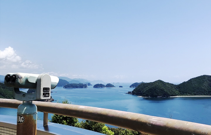 標高74mの高塚山に熊野灘臨海公園として整備された展望台です。展望台からは360度見渡せ、特に前面の熊野灘には「紀伊の松島」と呼ばれる大小の島々が浮かび、圧巻の景色が一望できます。