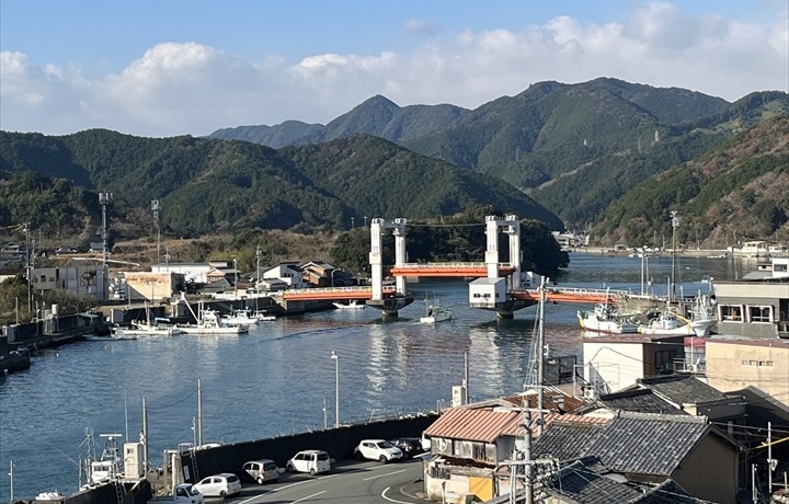 魚まちは、船が優先。橋が上がると歩行者や2輪車は、遮断機の手前で船が通るのを待ちます。運がよければ、見れるかも。