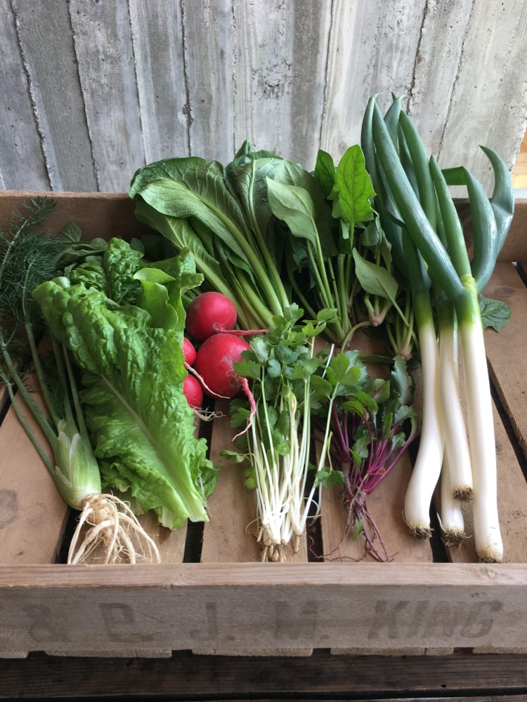 収穫した水菜や春菊と